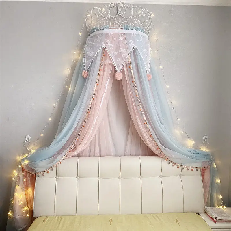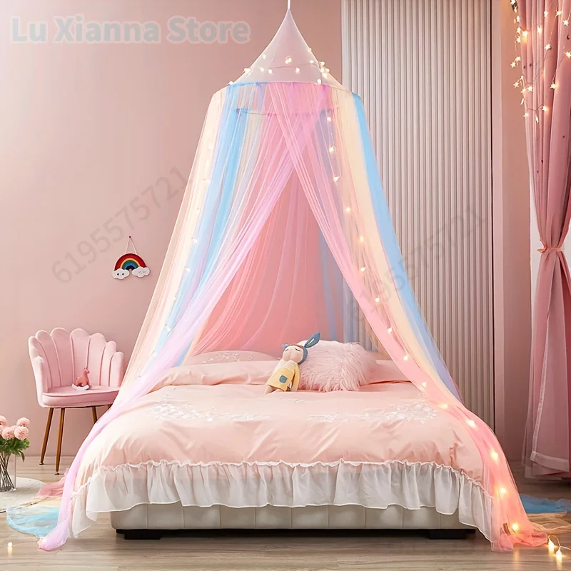 Zylindrisches Doppelbett-Moskitonetz mit Kapuze aus Polyester, Prinzessinnen-Baldachin, Bettvorhang, Bettüberwurf, Bettvolant, Heimtextilien für Mädchenzimmer
