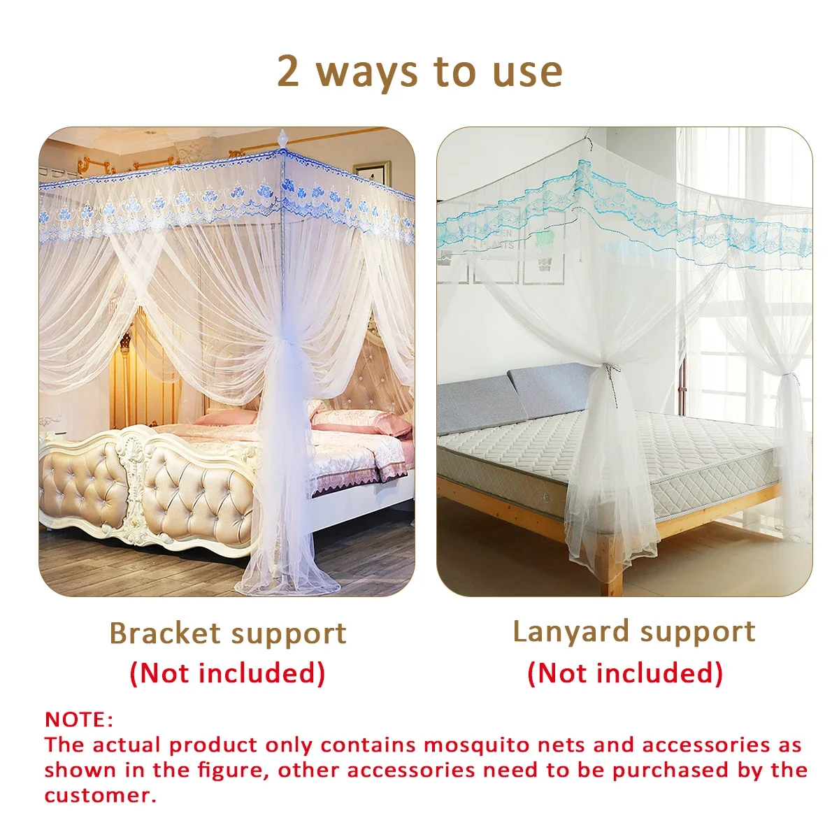 Princess Canopy 4-Eck-Luxus-Bettvorhänge, 3-seitige Öffnungen, Pfostenbettvorhang, Baldachin, Netz, Moskitonetz, Bettwäsche, ohne Halterung