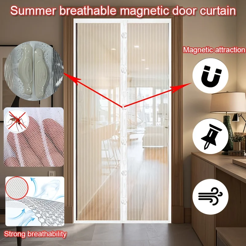 1 Stück einfach zu installierender magnetischer Netzvorhang – haustierfreundlich, freihändiger Zugang, gestreiftes Design, weiche Gaze, atmungsaktive Sommerbrise
