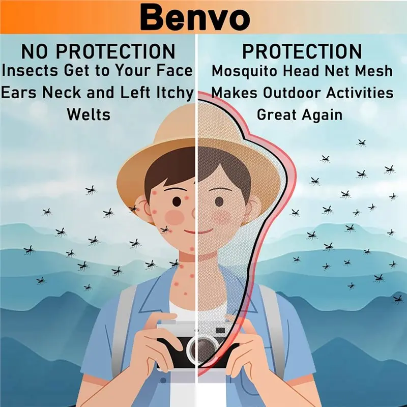 Moskitonetz für den Kopf, Fliegennetz für Gesicht und Hals, passend für die meisten Hutgrößen, zum Schutz vor Insekten, Mücken und Nasenfliegen – [Toolmr A83]