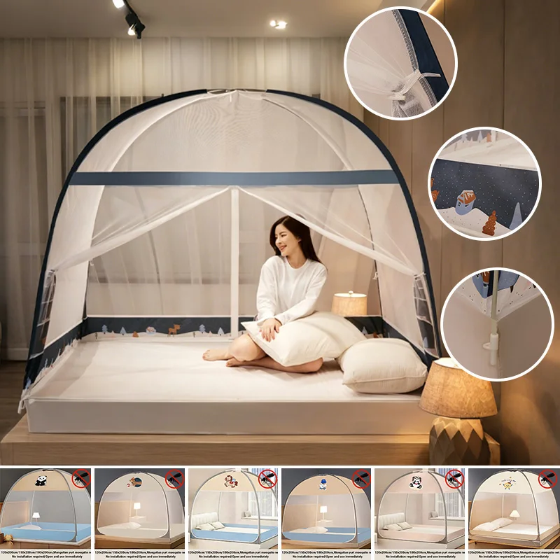 Anti-Fall-Moskitonetz für 1,5 m Bett, einfach zu installierender mongolischer Jurtenstil, Kinderbaby verhindert das Herunterfallen des Bettes, vollständiger Bodenschutz