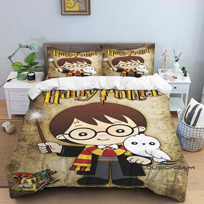 3D-Gedrucktes Bettwäsche-Set im Chibi-Stil mit Harry Potter-Motiv (Bettbezug & Kissenbezüge) – Perfekt zur Dekoration von Jungen- und Mädchenzimmern.1