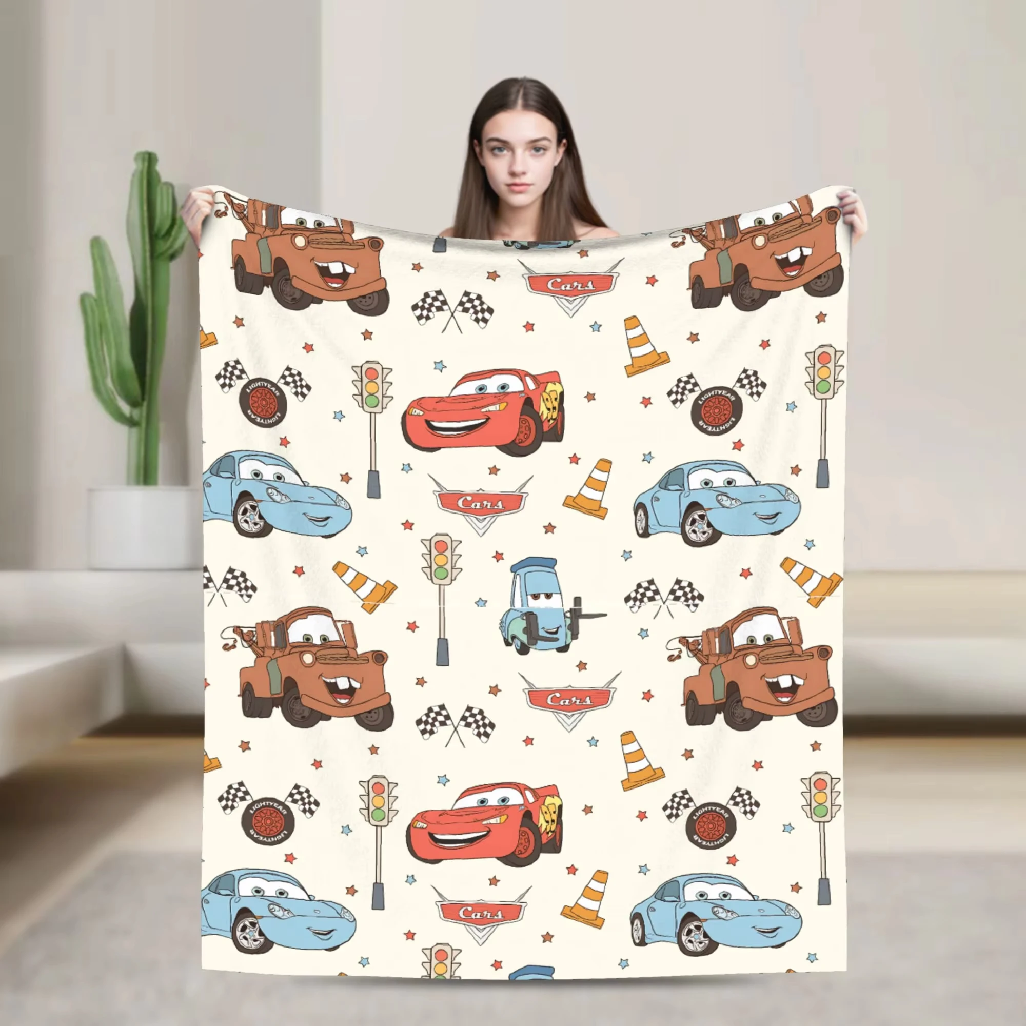 1 Stück Decke mit Disney-Autos-Muster, 2D-Einzeldruck, Flanell, Heimdekoration, weiches Accessoire, lustig, funktionell, für Kinder, attraktiv, langlebig