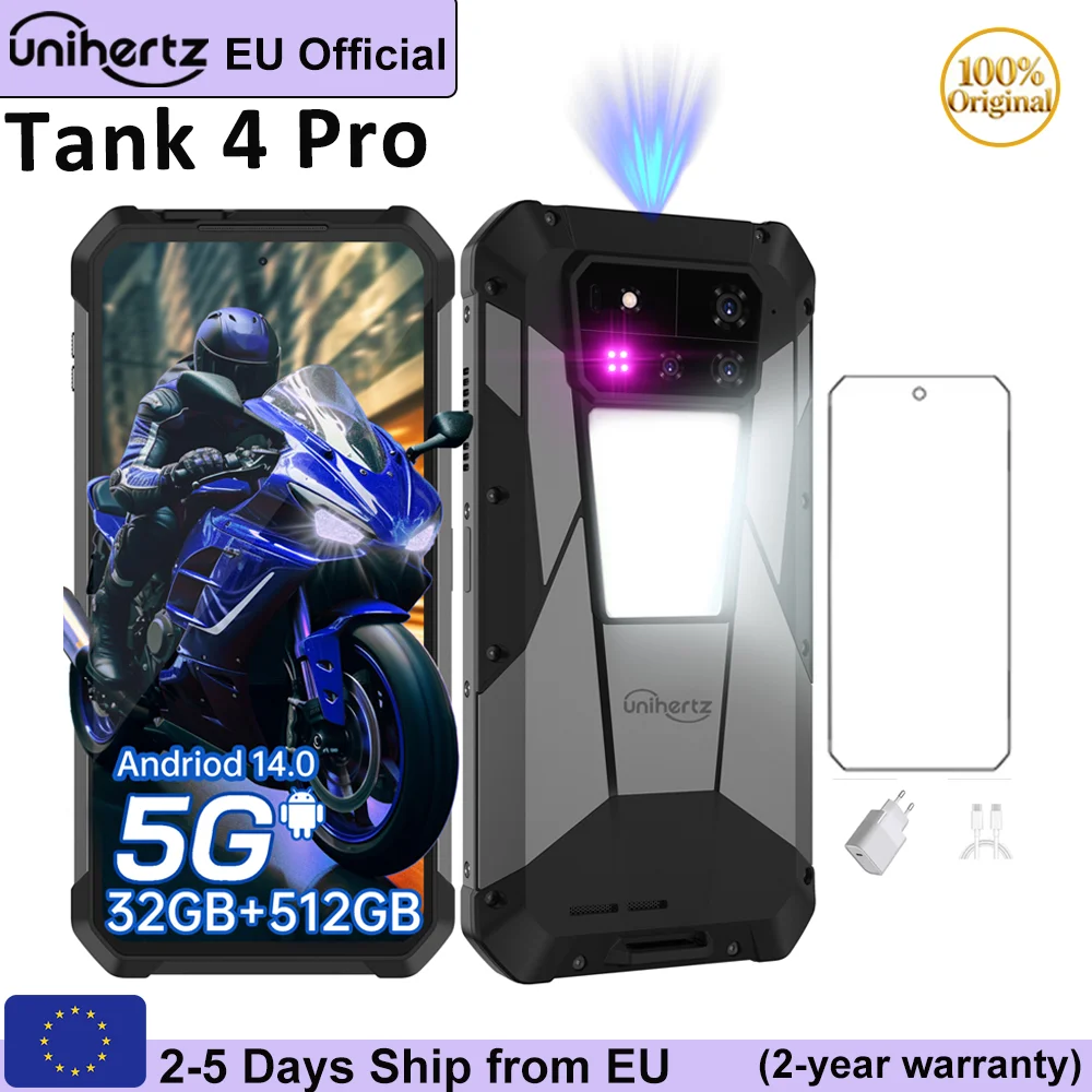 Unihertz 8849 Tank 4 Pro Rugged Projektor Smartphone 36G + 1 TB 5G Al Dimensity 8300 3K 6,73" AMOLED Android 14 11600 mAh Akku
