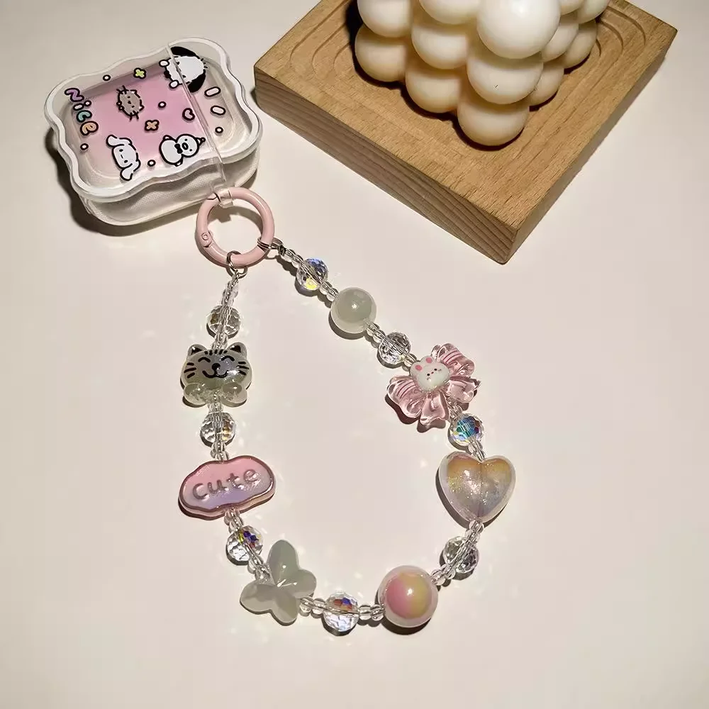 Süße Kirsche Erdbeere Schleife Handykette Lanyard Charm Strap Handgelenk Perle Hängende Schnur Armband Mobile Lanyard Schmuck Geschenk