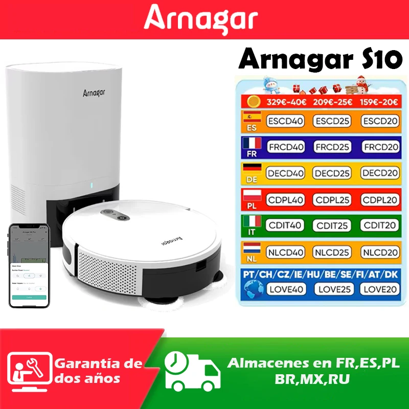 Arnagar S10 Roboter-Staubsauger mit automatischer Staubabsaugung, Wischfunktion, 12000 Pa, 2550 mAh, geräuscharm, APP-Steuerung für die Hausreinigung