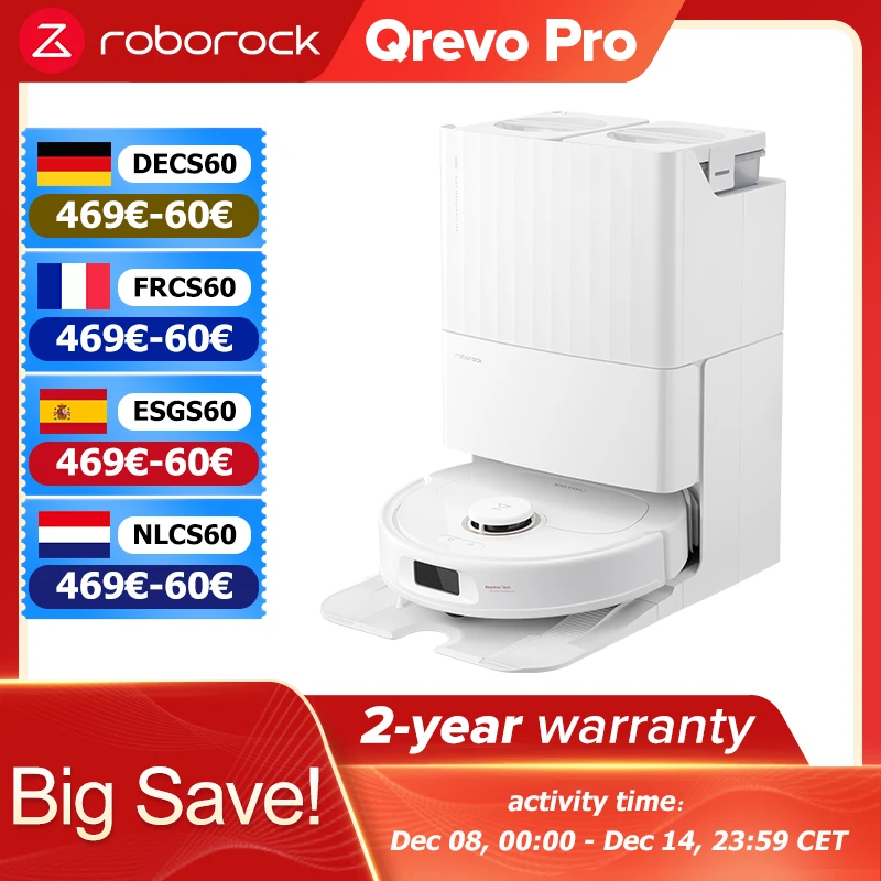 roborock Qrevo Pro (Upgrade von Qrevo S, S7 max ultra), Saugroboter mit All-in-One-Ladestation, FlexiArm-Design für Randnahes Wischen, dynamische Heißwasser-Moppwäsche und automatischer Moppdrocknung, intelligenter Schmutzerkennung und automatischer Dosier