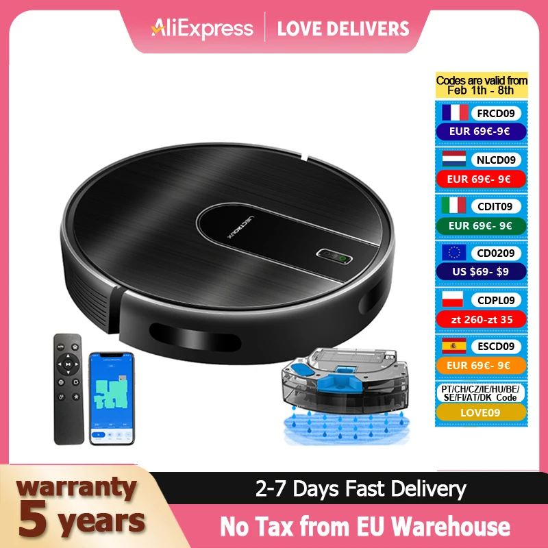 Staubsaugerroboter LIECTROUX N7S-U, Trocken- und Nasswischkombination, Smart Mapping, WiFi App, 4KPa Saugkraft, bürstenloser Motor, funktioniert mit Alexa und Google Assistant, ideal für Tierhaare, Teppich, Hartboden