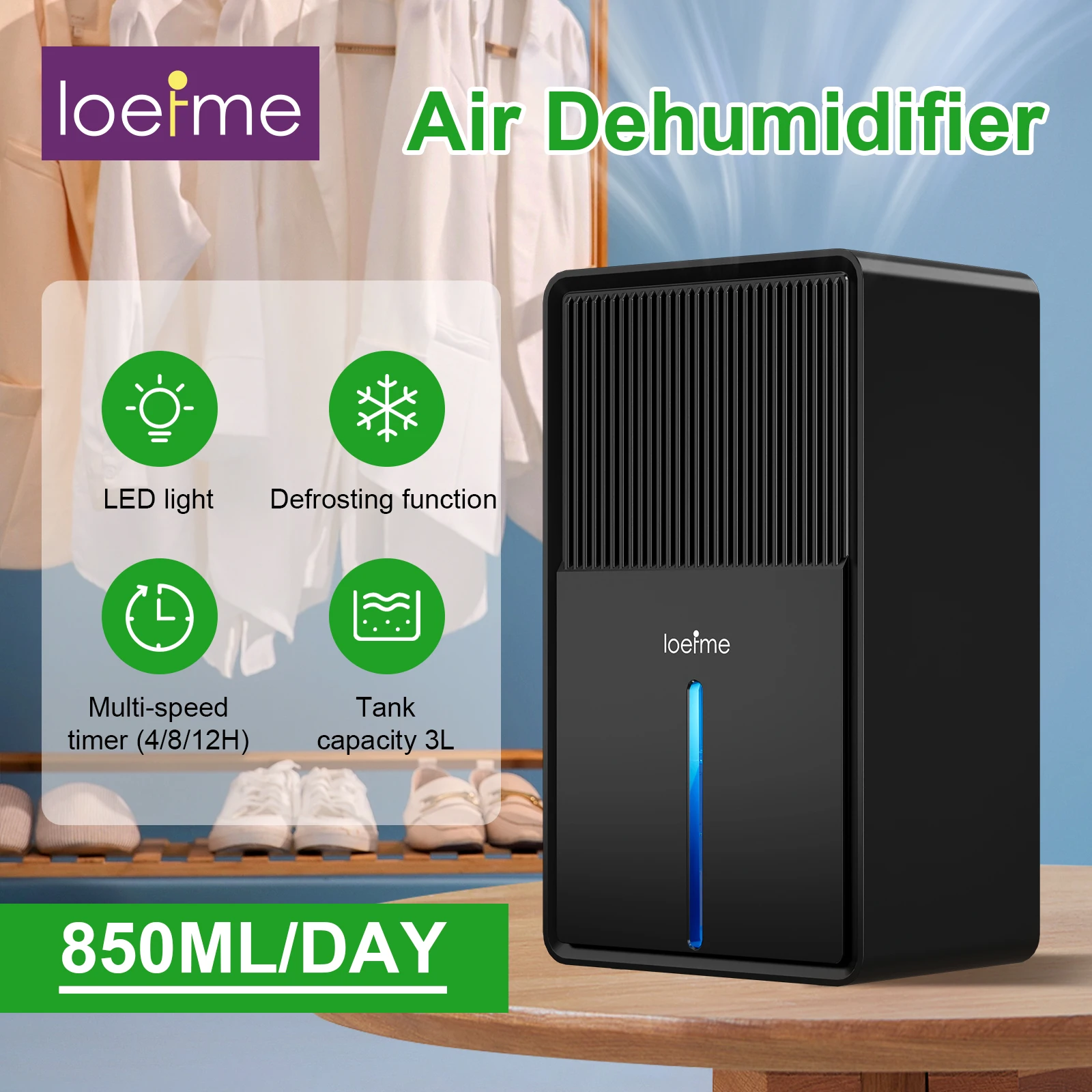 LOEFME 3,0 L Luftentfeuchter Tragbare Stumm Feuchtigkeit Absorber Maschine Luft Trockner Deodorant Trockner Für Home Schlafzimmer Büro Küche