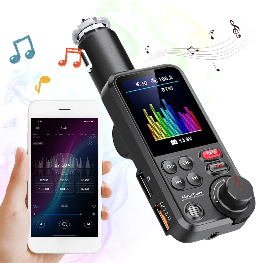 1,8 Zoll Musik-Player QC3.0 Aufladen Bluetooth-kompatibler Schnellladegerät-Adapter Kabelloses USB-Schnellladegerät Auto-Ladegerät-Adapter