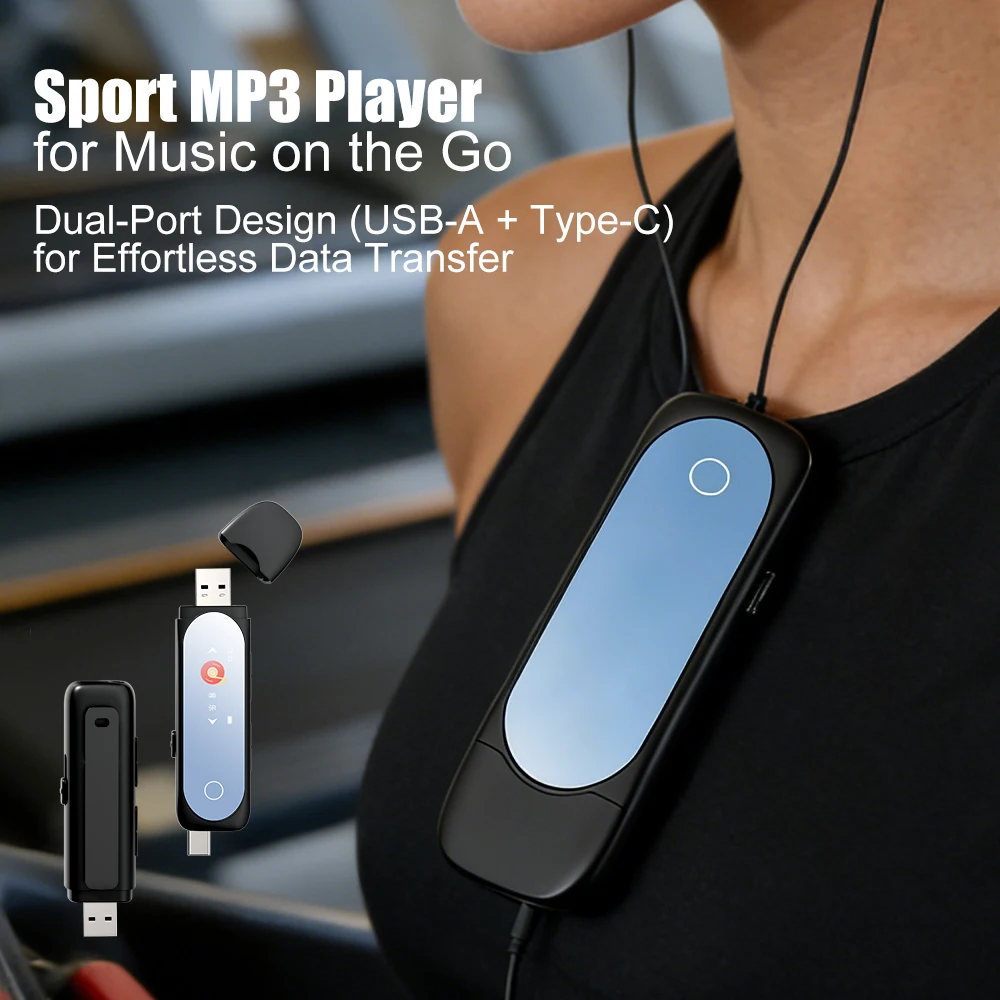 USB-MP3-Player mit Bluetooth 5.4 für Auto, Typ-C Direktanschluss für Mobiltelefon-Datenübertragung, Clip-on Ohrhörer für Outdoor-Aktivitäten