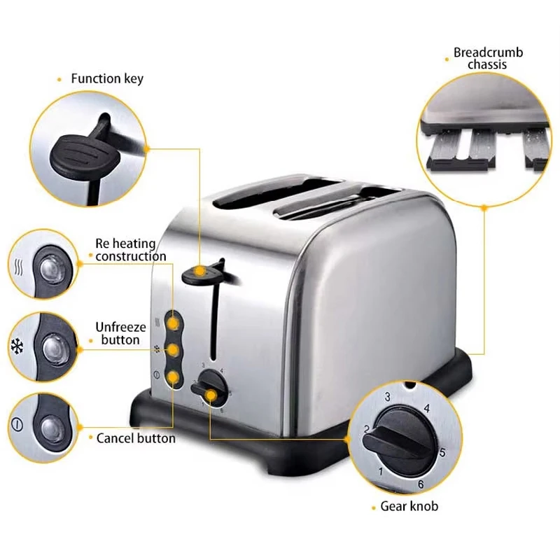 2025 Neue 2-Scheiben-Brotbackmaschine, elektrischer Toaster, Edelstahl-Frühstücksmaschine, doppelseitige Heizung, Sandwichmaker