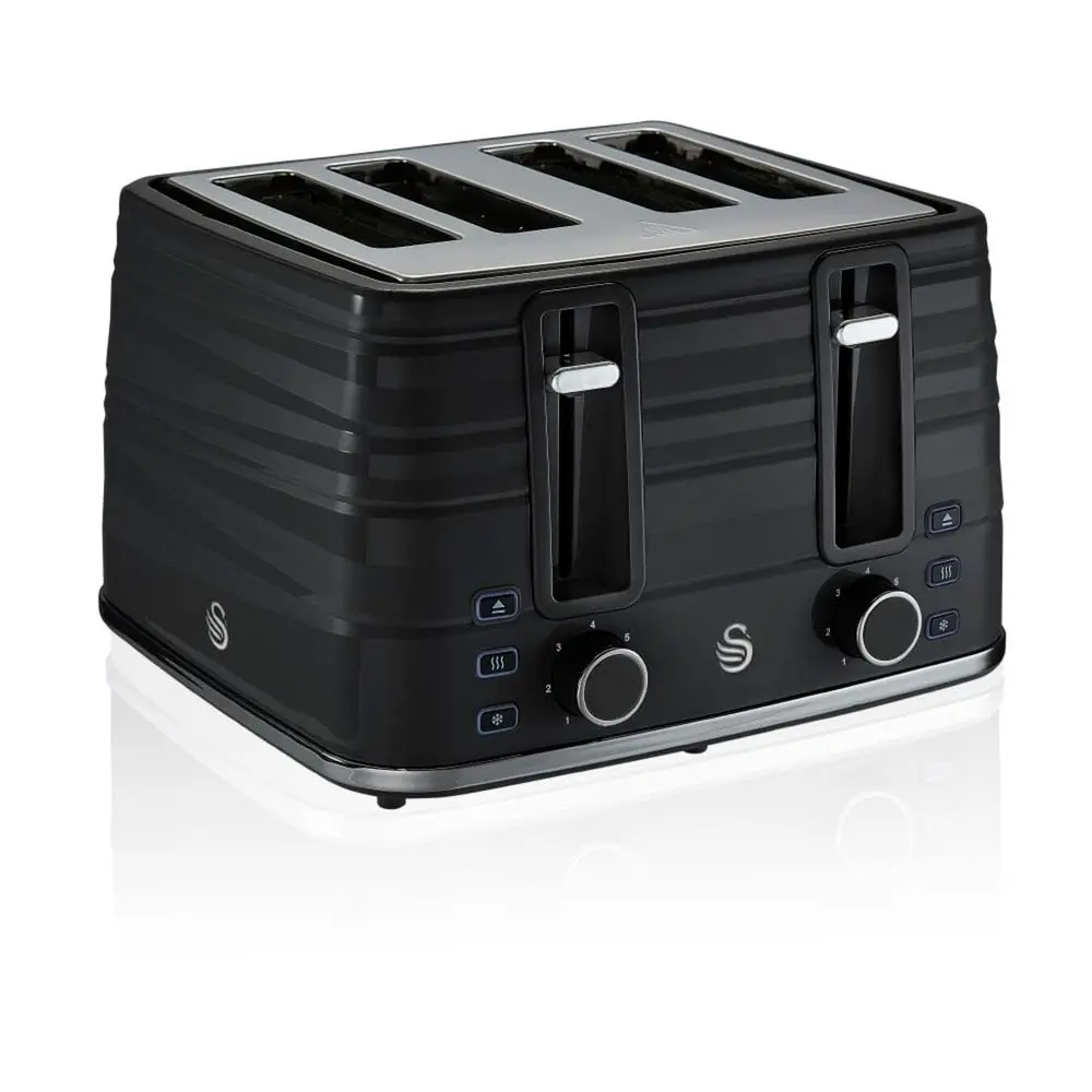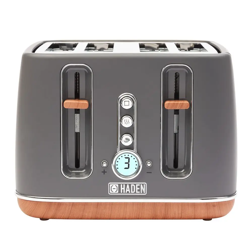 Dorchester Grey Toaster mit 4 Schlitzen, variablen Bräunungsstufen, digitaler Steuerung und breiten Schlitzen, 4-Scheiben-Toaster mit Stopp-, Auftau- und Aufwärmfunktion