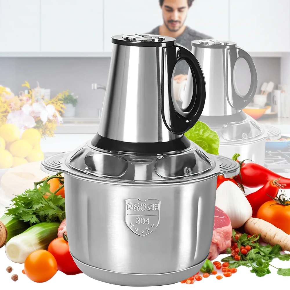 Elektrische Fleischwölfe, 5 l, Lebensmittelzerkleinerer, Edelstahl, multifunktionaler Gemüseschneider, Prozessor, Zerkleinerer, Küchenmixer