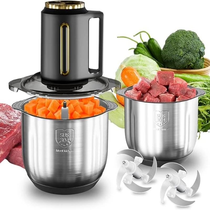 Elektrischer Fleischzerkleinerer, 2,5L 300W, Edelstahl mit 4-Klingen-S-Messer, 3 Geschwindigkeiten, 11000 U/min für Babynahrung, Gemüse, Obst