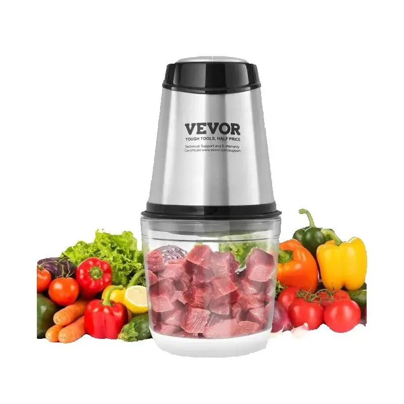 SucceBuy Küchenmaschine, elektrischer Fleischwolf mit 4-flügeligen Edelstahlklingen, 2,5-Tassen-Glasschüssel, 400 W elektrischer Lebensmittelzerkleinerer