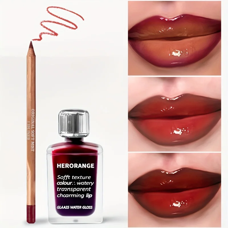 Herorange Matte Lip Liner + Feuchtigkeitsspendender Lipgloss-Set, Mehrfarbig und Vielseitig, Geeignet für Alle Hauttypen, Zweifarbige Lippenkonturierung, Langanhaltend und Nicht Klebend, Pflegt und Vergrößert die Lippen, Ideal für Geschenke zu Feiertagen
