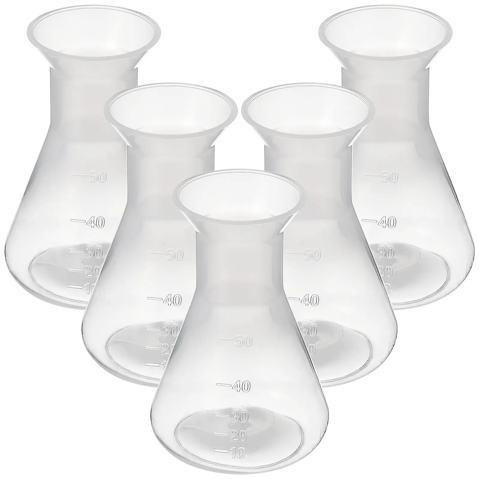 5 Stück Messkonische Gläser aus Kunststoff, transparent, PP, Laborgläser für Chemieexperimente, Bildung, Wissenschaft, Lehre, stabile Basis