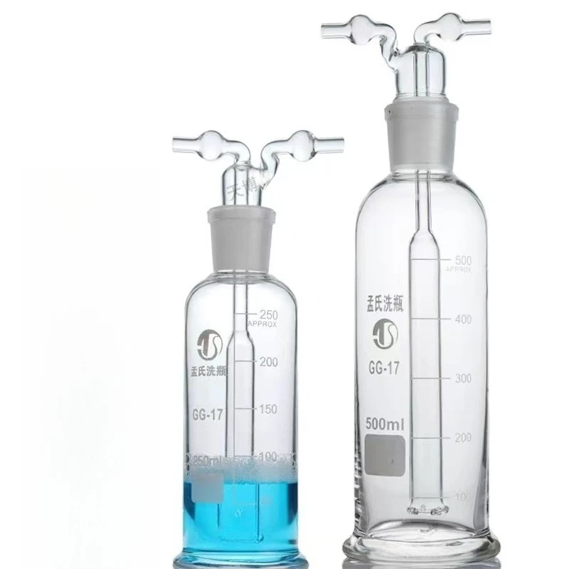 Hochborosilikatglas Mengshi Gaswaschflasche, Verstärkte Mehrfachloch-Gaswaschflasche für Labor 10/25/50/100/150/250/500ml