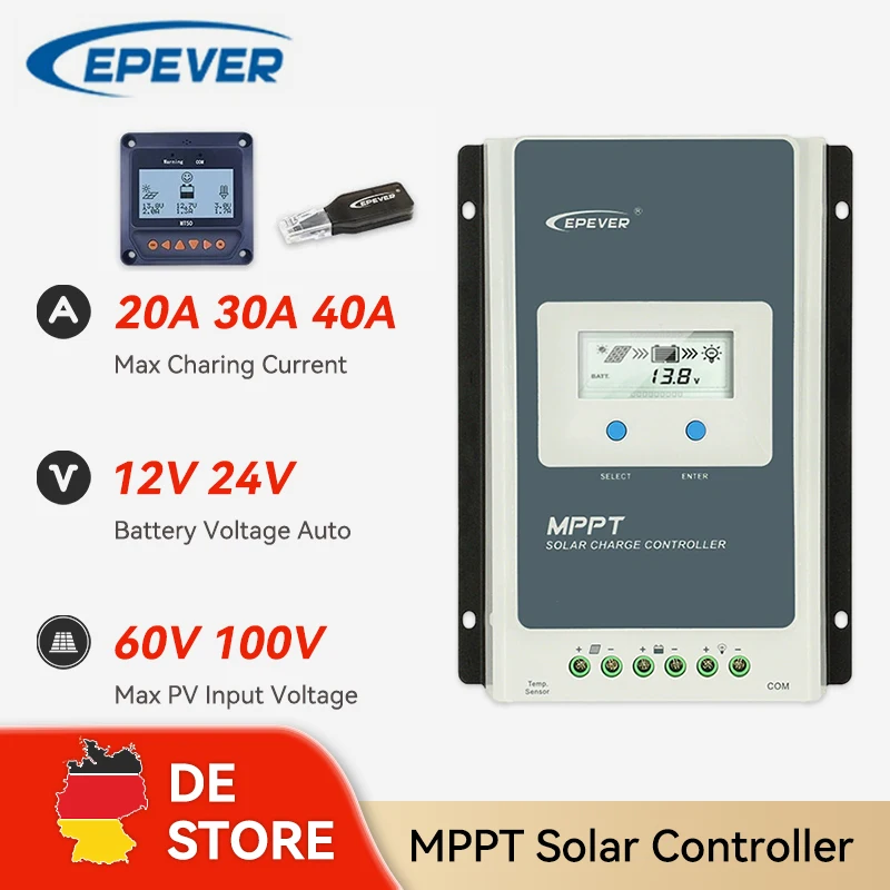 EPever MPPT 30A Solarladeregler 12V 24V Auto Solarpanel Regler Solarbatterieladegerät Tracer3210AN