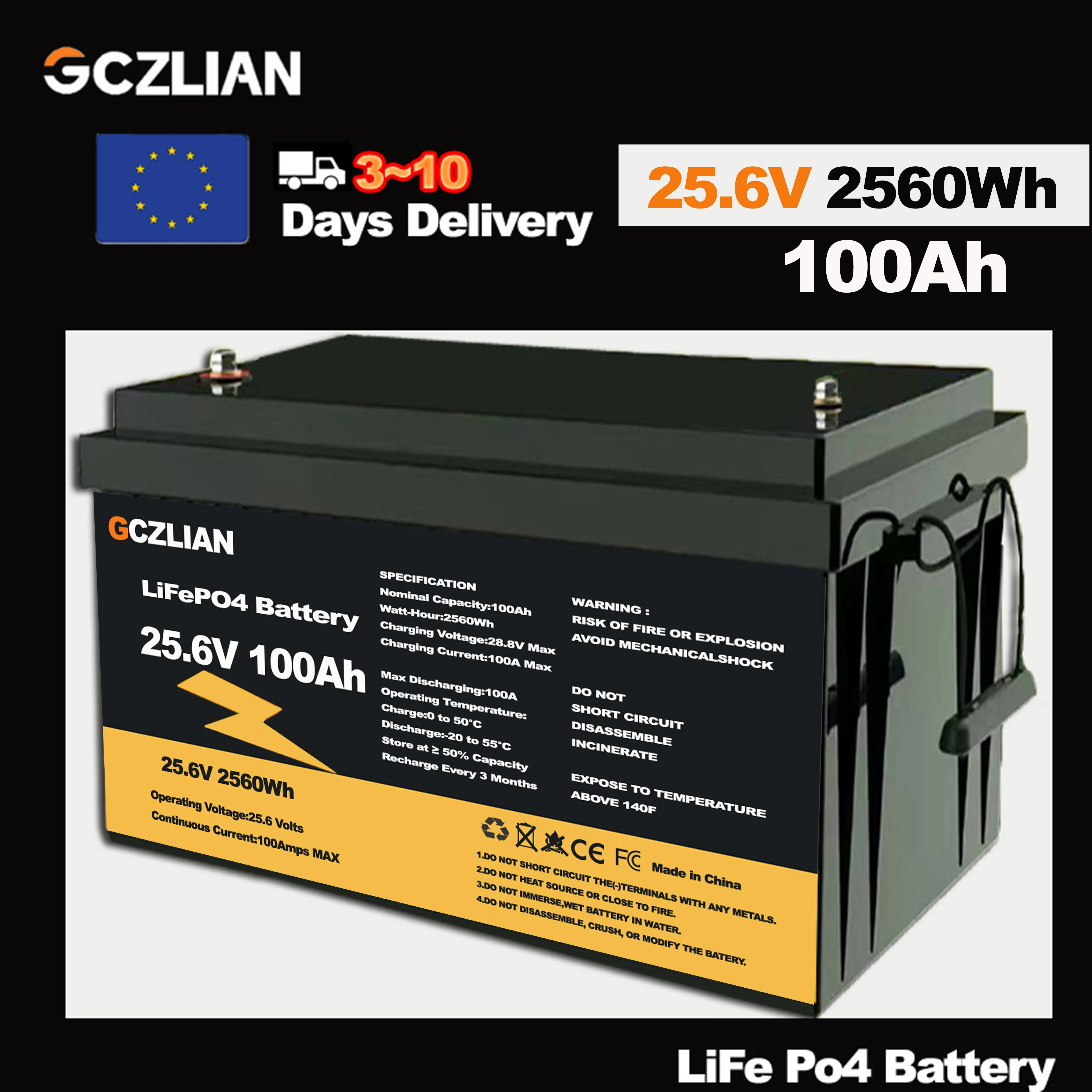 24V 100Ah Batterie Lithium-Eisen 2560Wh BMS für RV Solar Marine Trolling Motor Backup Pack für Camping Auto Solar EU Lager