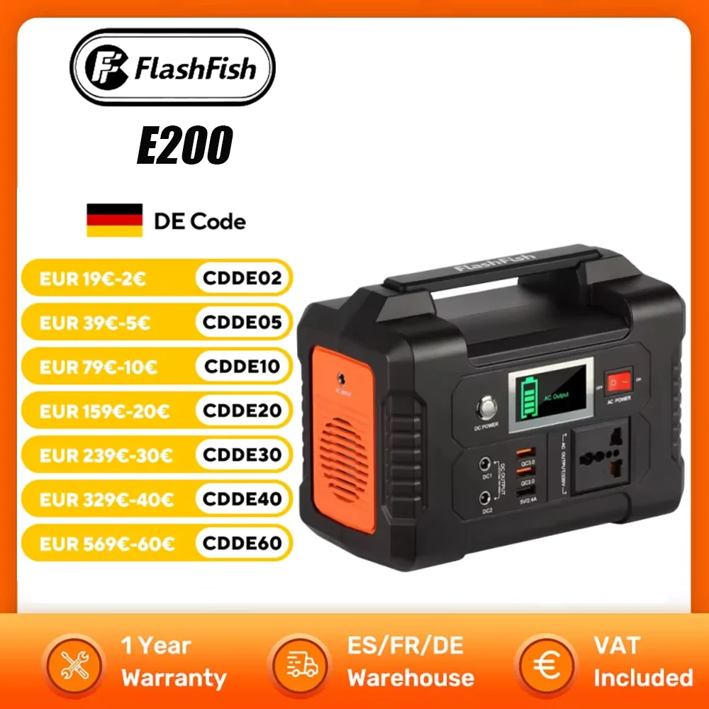 Flashfish E200 Tragbare Powerstation 200W Solargenerator 151Wh Lithium-Batterie Notstromversorgung für Zuhause Outdoor-Camping Mobile Stromversorgung