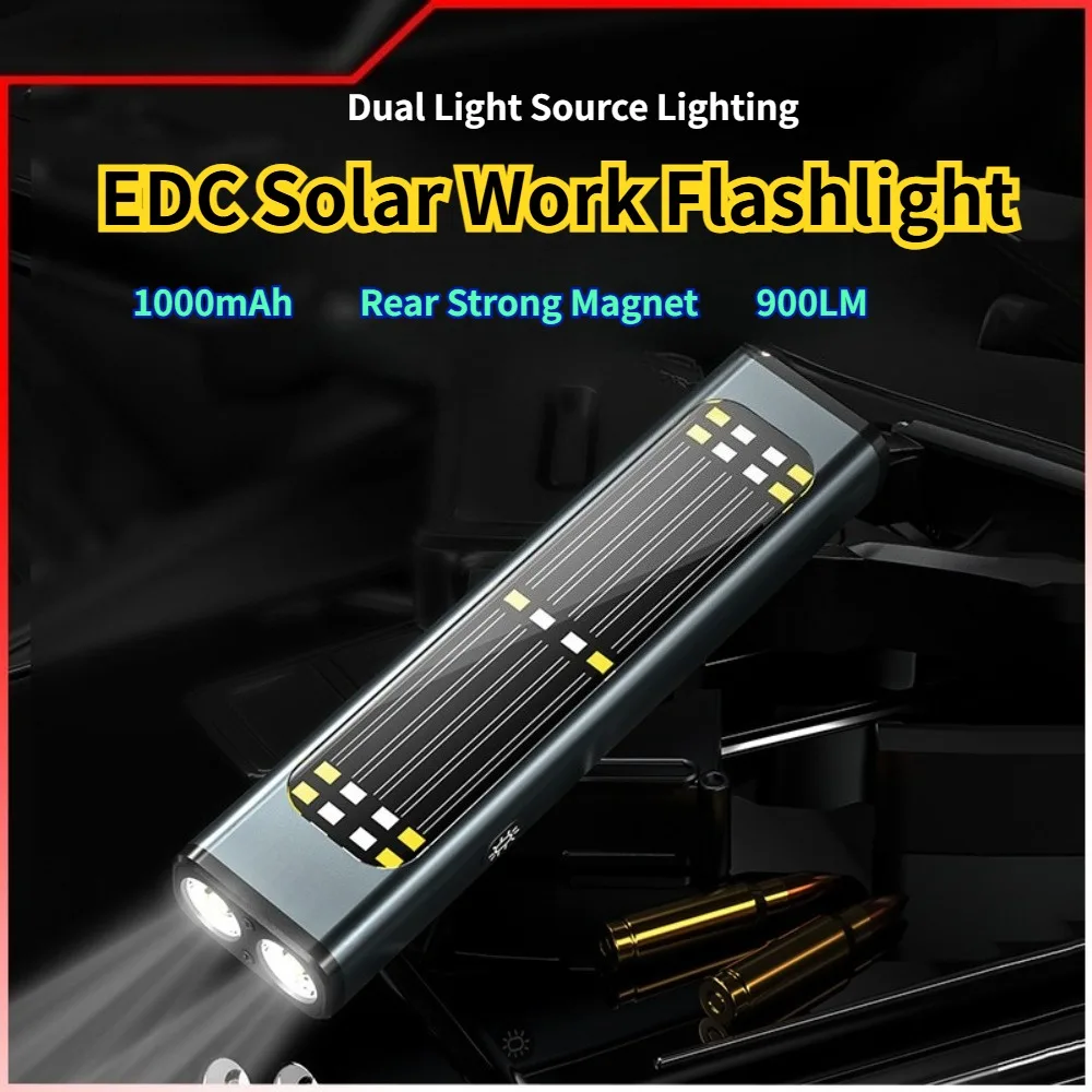 Taschenlampe aus Aluminiumlegierung, tragbare Arbeitsleuchte mit starker Helligkeit, Solaraufladung, magnetische Anziehungskraft, ideal für den Außenbereich