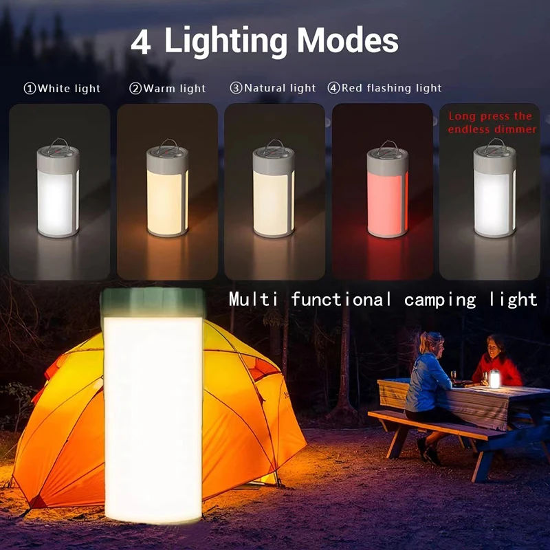 Multifunktionale Campingleuchte für den Außenbereich, Solarbeleuchtung, Arbeitslampe, vierfarbig, stufenloses Dimmen, augenschützende Taschenlampe, Nachtlicht