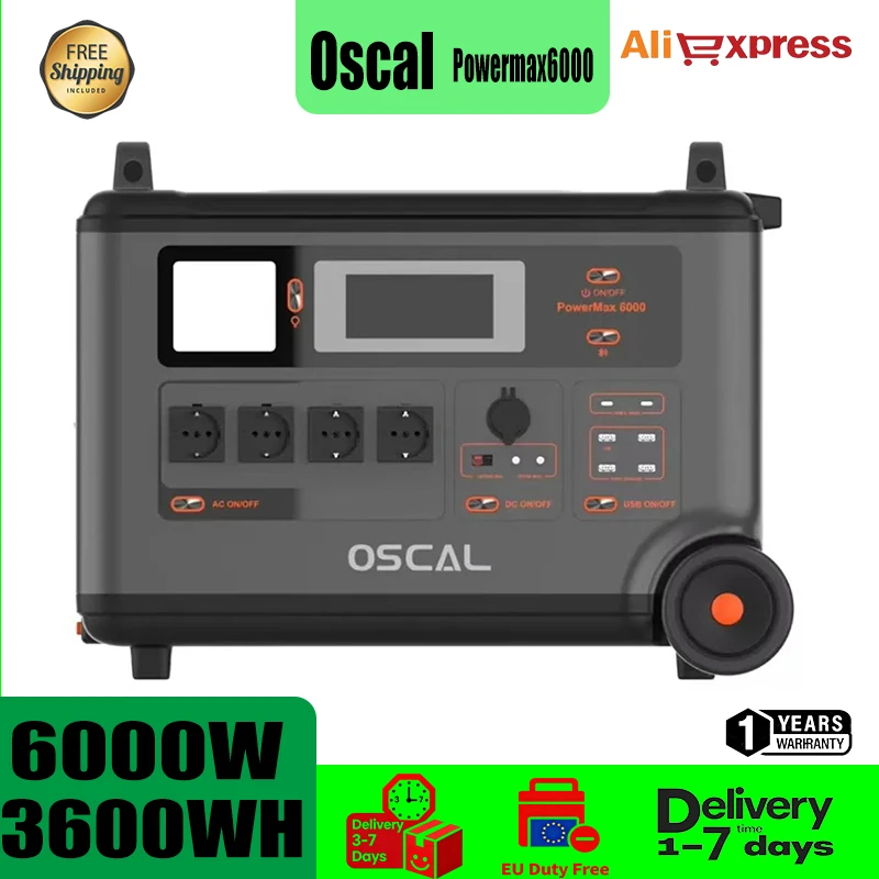 Oscal PowerMax 6000 Tragbares Kraftwerk 6000 W Solargenerator 3600 Wh LiFePO4-Batterie Home Backup Outdoor Camping Mobile Stromversorgung
