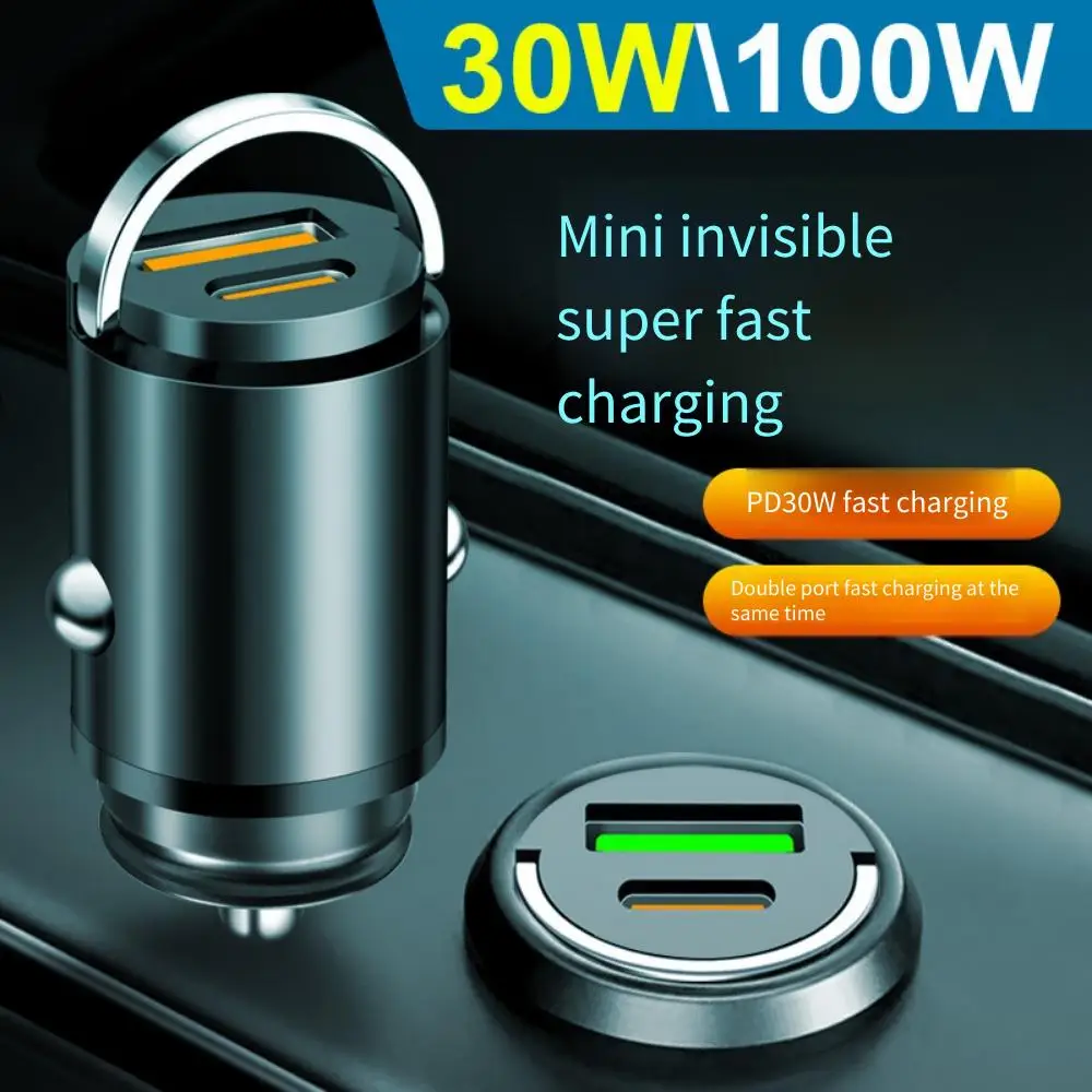 Verstecktes Mini 100 W Autoladegerät Zugring USB + Typ C Schnellladegerät Adapter für iPhone 16 15 Xiaomi Samsung Auto-Schnellladegerät