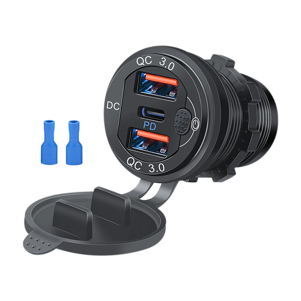 12V/24V dreifaches Aluminium metall 60W USB-C mehrere Auto ladegerät buchse pd 3,0 & zwei qc 3,0 Ports mit Touch-Schalter schneller Auto adapter
