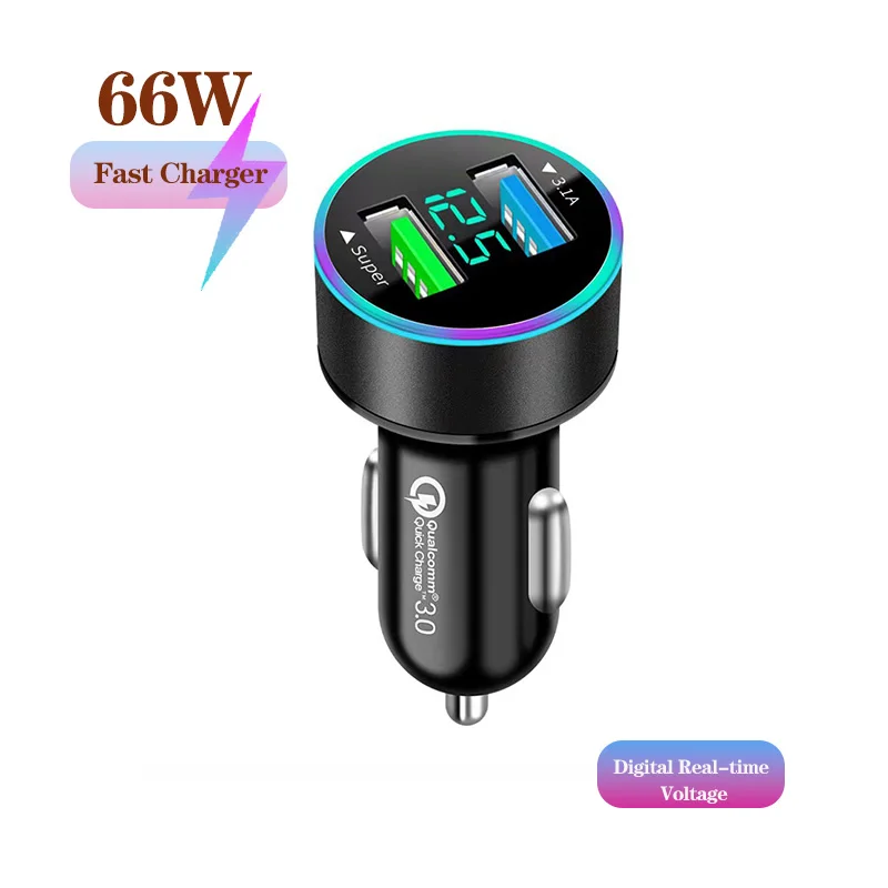 120W 2Port USB Digital Echtzeit Spannung Autoladegerät QC3.0 Auto Superschnelles Ladegerät für Telefone Auto-Zigarettenanzünder-Adapter