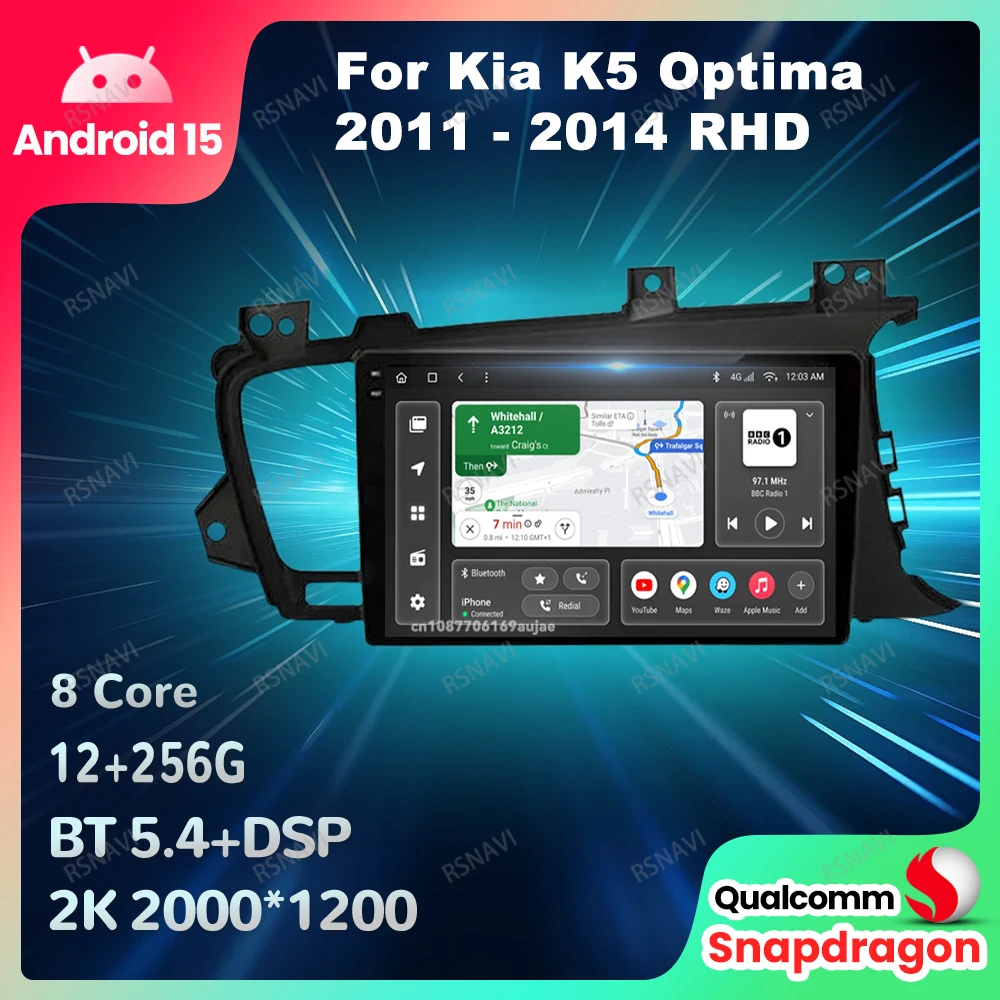 Auto Radio Android 15 Für Kia K5 Optima 2011-2014 RHD Kopf Einheit BT Drahtlose Carplay Auto Multimedia Qualcomm QLED GPS DVD DSP