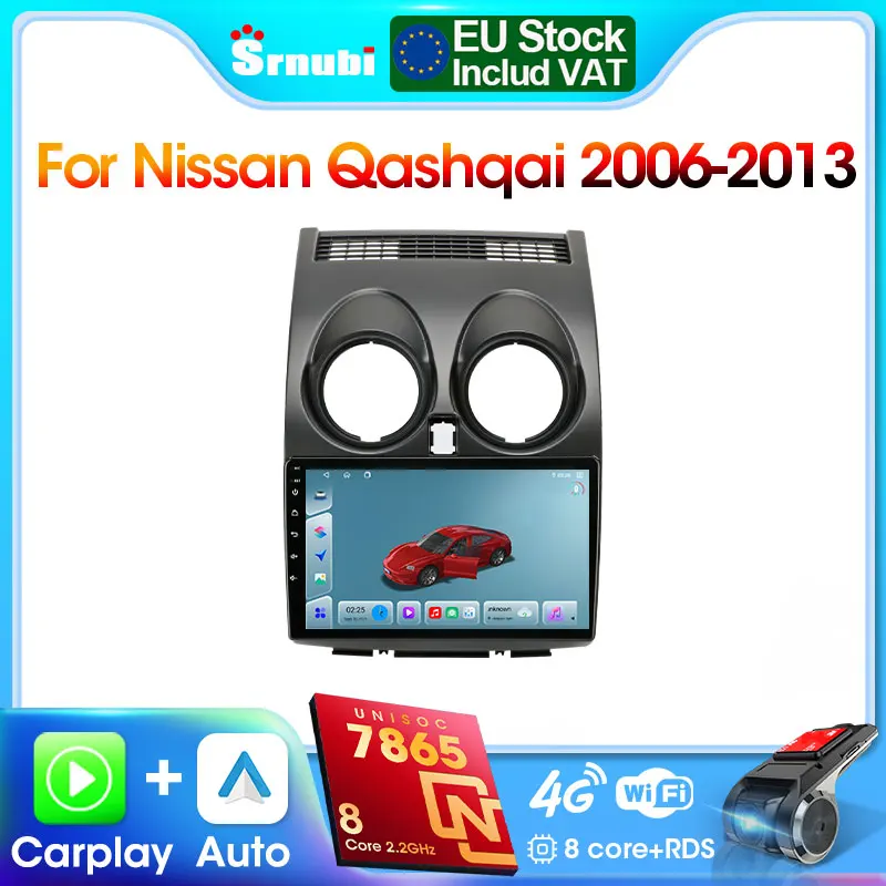 Srnubi Autoradio für Nissan Qashqai J10 2006 - 2013 mit Chip UIS7865 Android 14 Kabelloses Carplay Android Auto Hauptgerät