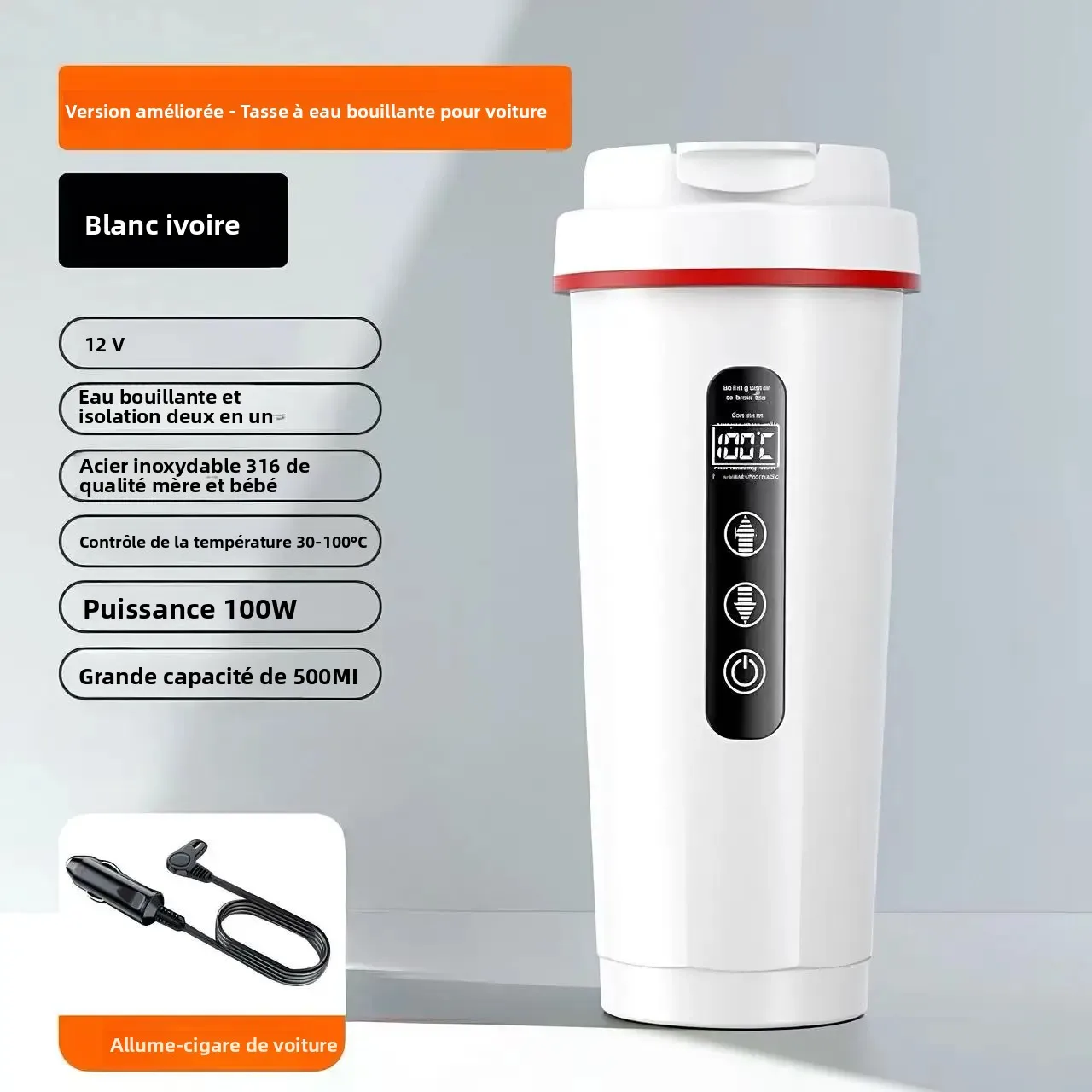 Intelligenter Auto-Wasserkocher 500ml 12/24V Universal Intelligente Heizung Isolierung Integrierter Becher 316 Edelstahl-Innentopf