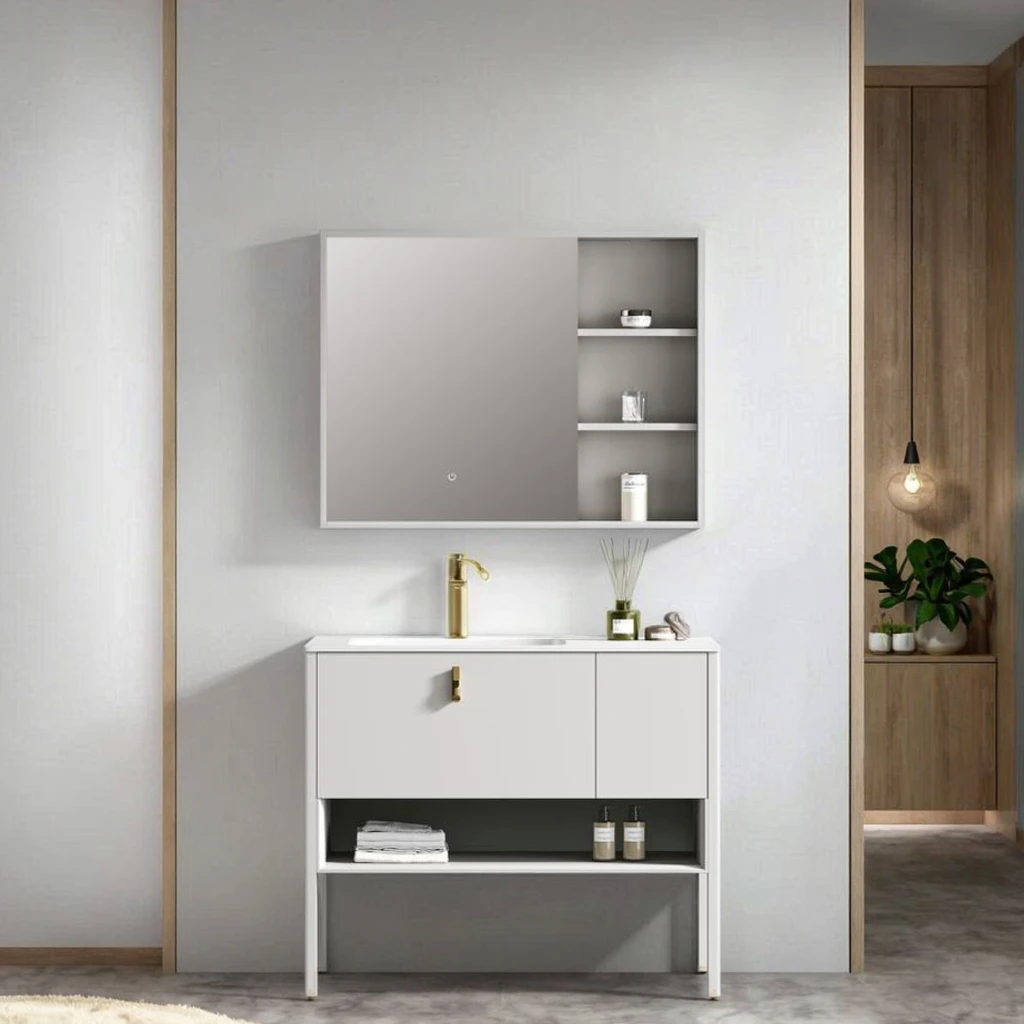 Neues goldenes Säulenwaschbecken im europäischen Stil, Badezimmer mit hellgoldener Textur und integriertem Bodendesign