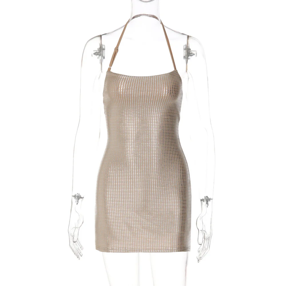 Europäischer und amerikanischer Mode-Socialite-Stil, vielseitiges, lässiges, einfarbiges Khaki-Kleid im sexy, schlichten, verführerischen Stil.