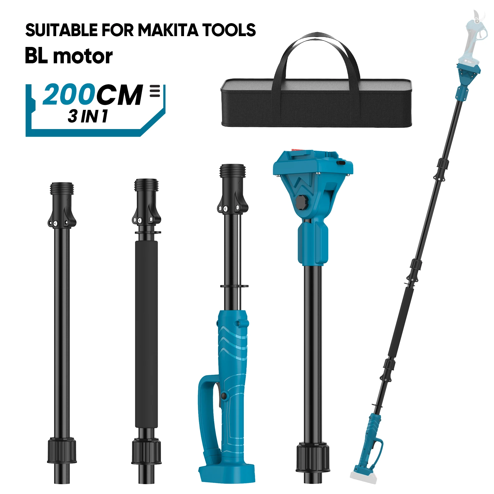 2 m lange Plug-In-Verlängerungsstange für elektrische Gartenschere und Kettensäge 180 ° Passen Sie die Teleskopstange mit hohem Zweig für den 18-V-Teig von Makita an
