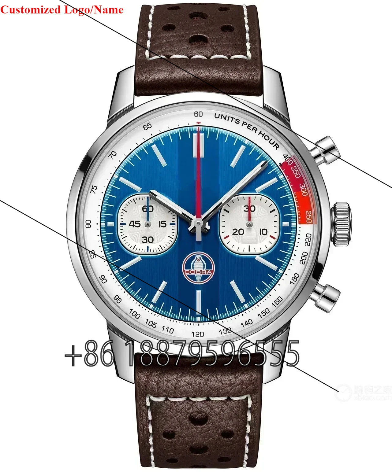 Herren Quarz Chronograph Uhr Brandneu Luxus Mode Sport Edelstahl Braunes Leder Saphir Grün Rot Individuell Anpassbar