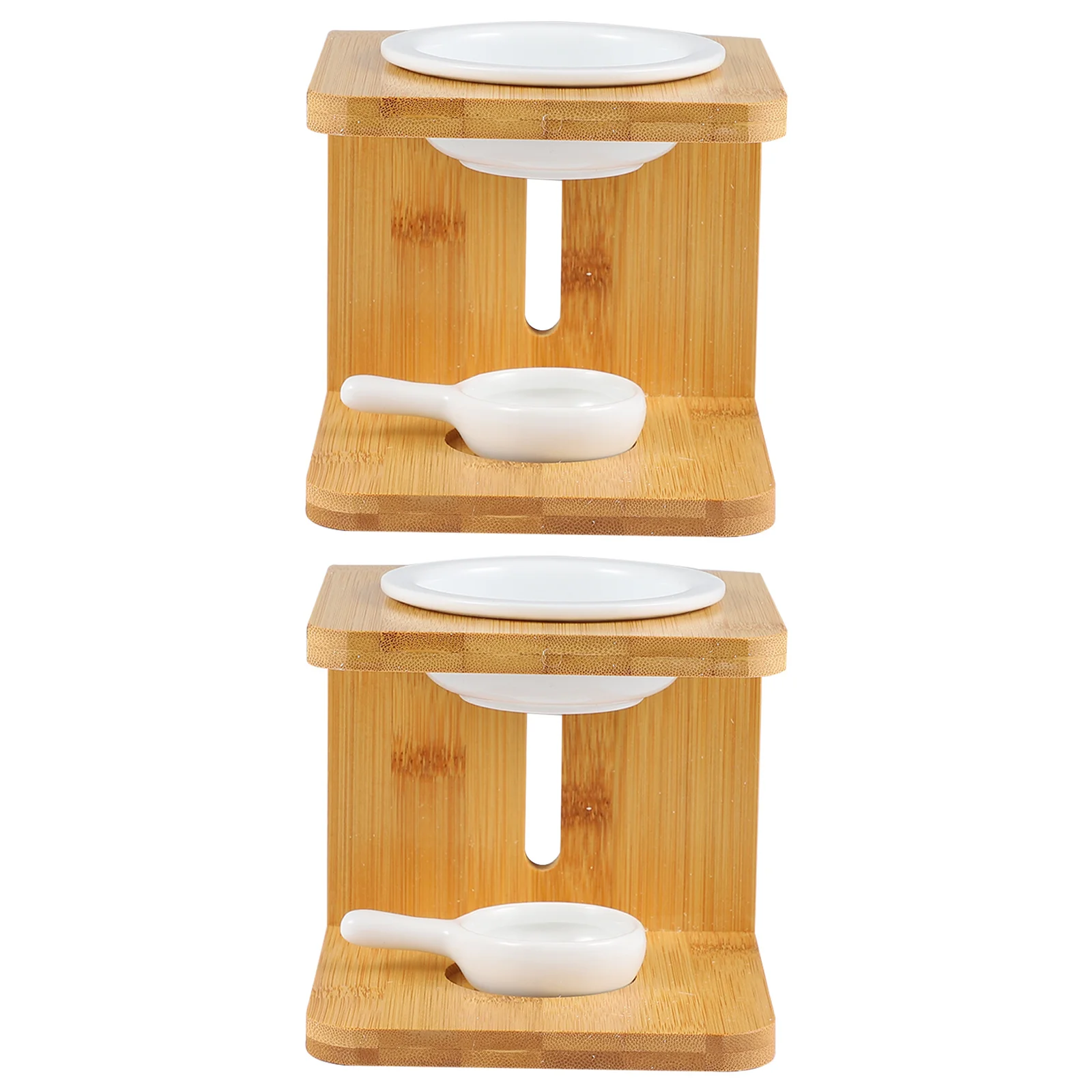 2Sets Bambus Ätherisches Öl Brenner Teelicht Wachs Schmelzen Halter Holzrahmen Langlebige Aroma Duft Lampe für Zuhause
