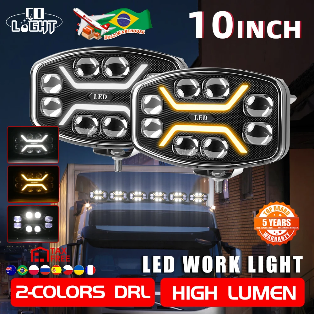 CO-LICHT 10 Zoll 24 V LED-Nebelscheinwerfer/Fahrlichter Strahler LKW-LED-Scheinwerfer LED 4 x 4 80000 lm weiß bernsteinfarben Anhänger Luces Para Camiones
