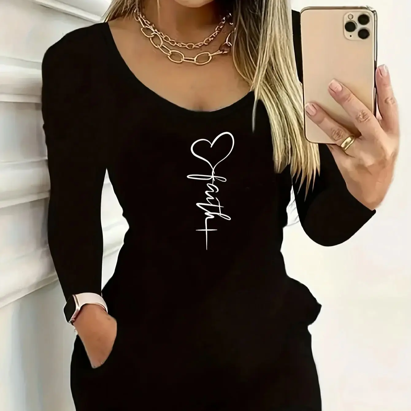 2026 Lässige und Elegante Frühling/Sommer Damenmode - Rundhals Enganliegendes Einfarbiges Herzschlag-Bedrucktes Kurzarm-Kleid