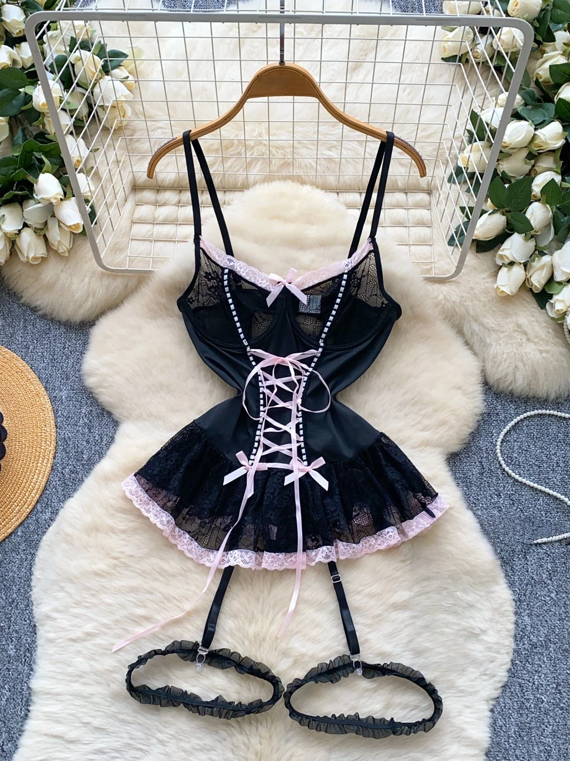 Damenmode Sexy Kleid mit Spitze und Schleifendekoration, Schlankes Sexy Bequemes Kleid, Party Hotsweet Minikleid Neu