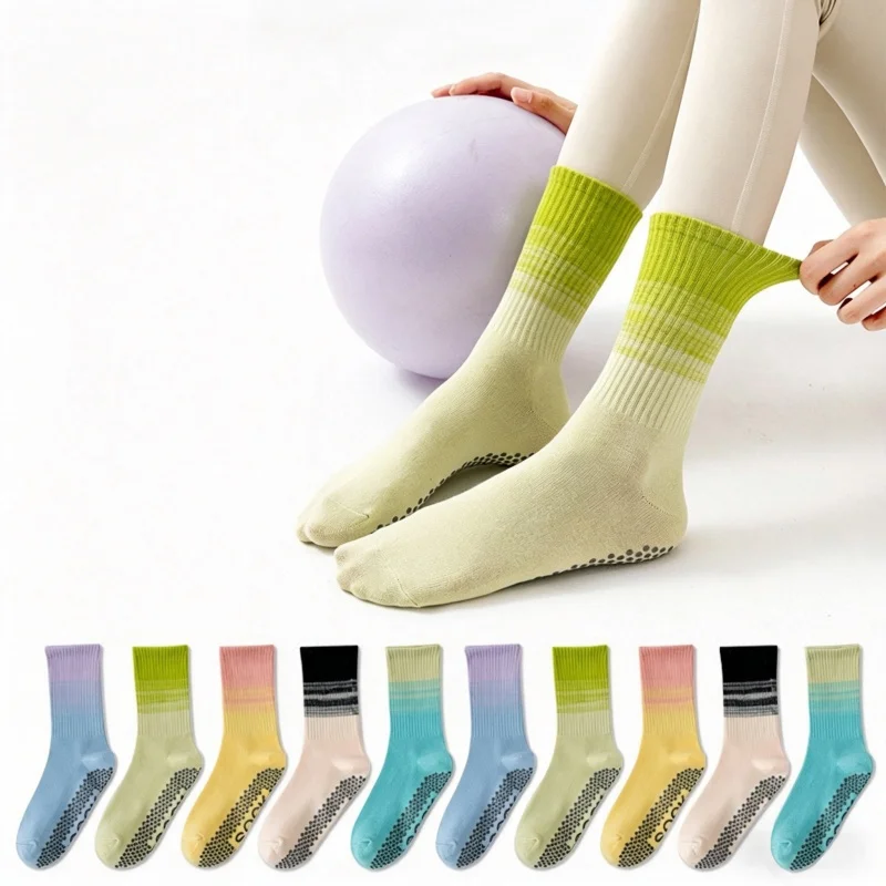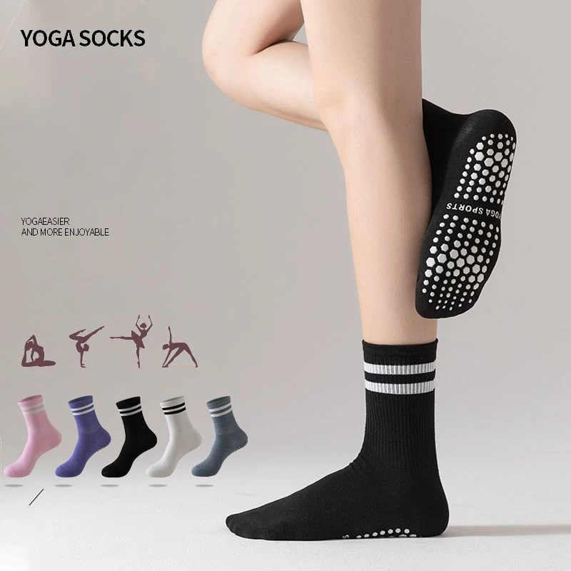 Dreamlikelin 1 Paar Damen-Yoga-Socken, Wadenlange Socken für professionelles Fitness- und Pilates-Training, atmungsaktive Socken mit Silikon-Anti-Rutsch-Grip