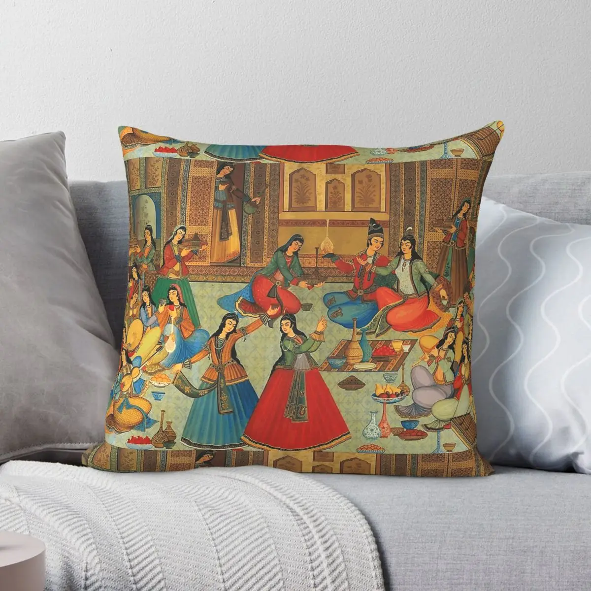 Persischer Damen-Tanz-Kissenbezug, quadratisch, Polyester, Leinen, Samt, kreativer Reißverschluss, Deko-Kissenbezug, Auto-Kissenbezug