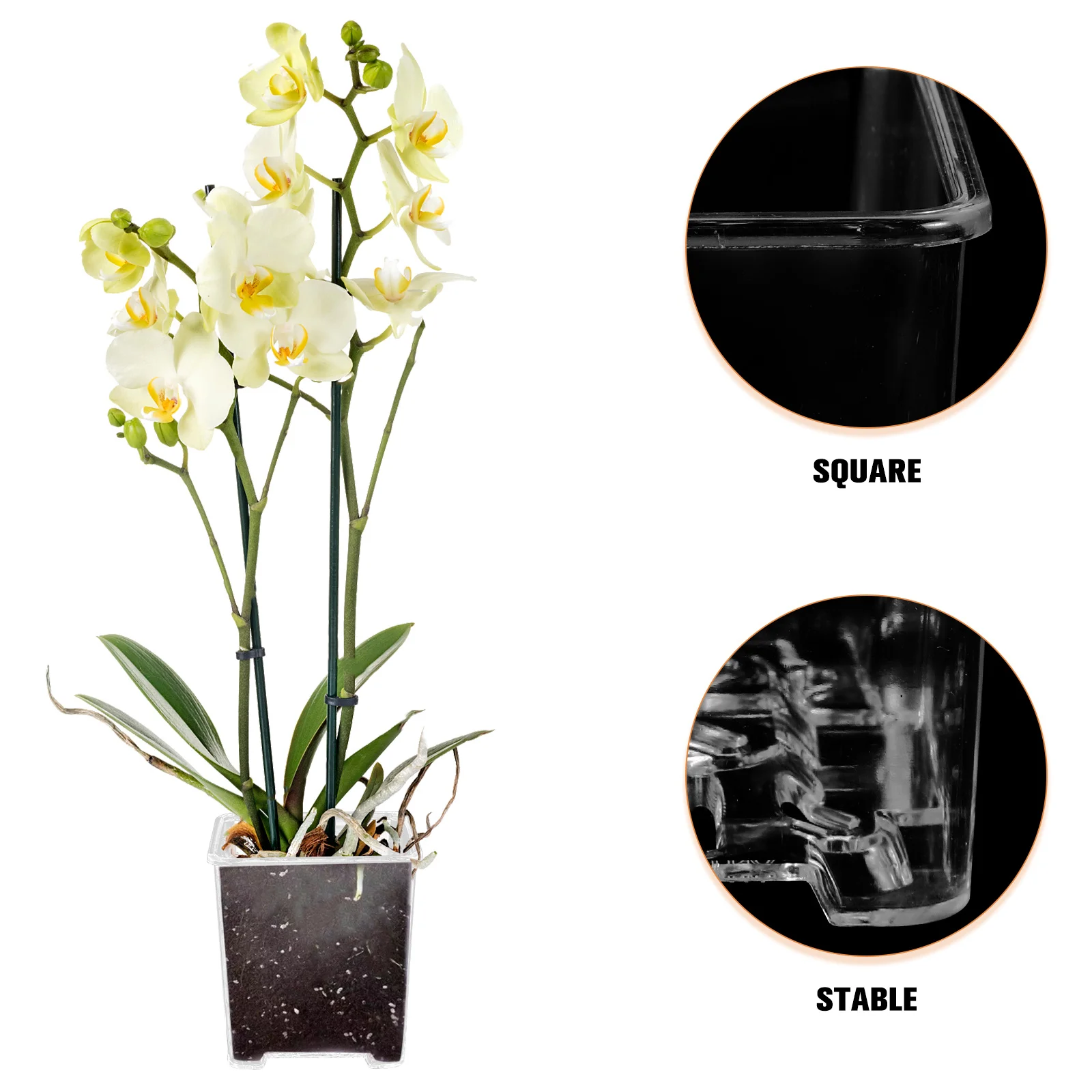 5 Stück quadratische, durchsichtige Orchideentöpfe, transparente Pflanzgefäße für Kinderzimmer, für kleine Pflanzen, kein Tablett, einfache Entwässerung, Kunststoff-Blumentopfbehälter