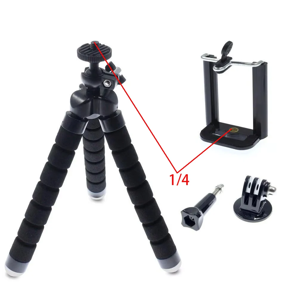 Flexibles, verstellbares Mini-Stativ-Ständer-Set (Stativ + GoPro-Adapter + Telefonclip), 1/4 Schraubenadapter mit Gopro und Telefonadapter