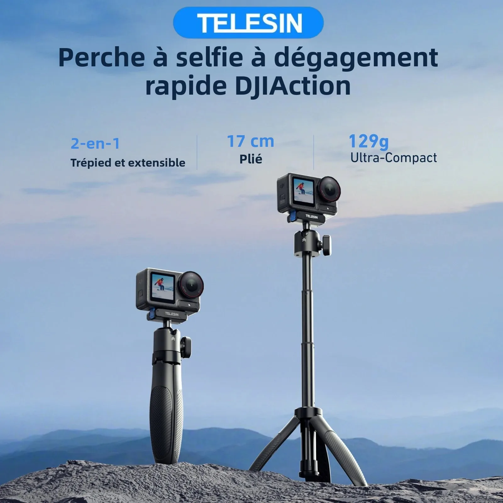 für Gopro Vlog Stativ faltbares Stativ Mini tragbares Einbeinstativ für Go Pro Hero 11 10 8 7, schwarze Sitzung Osmo Action-Kamera-Zubehör
