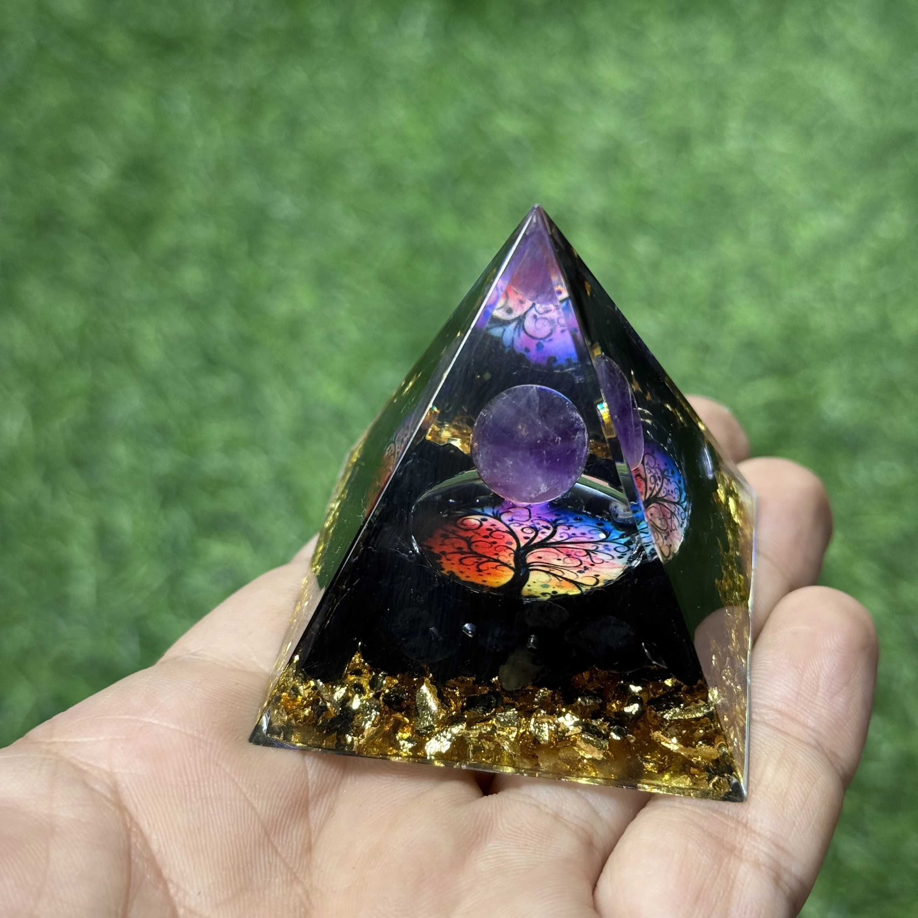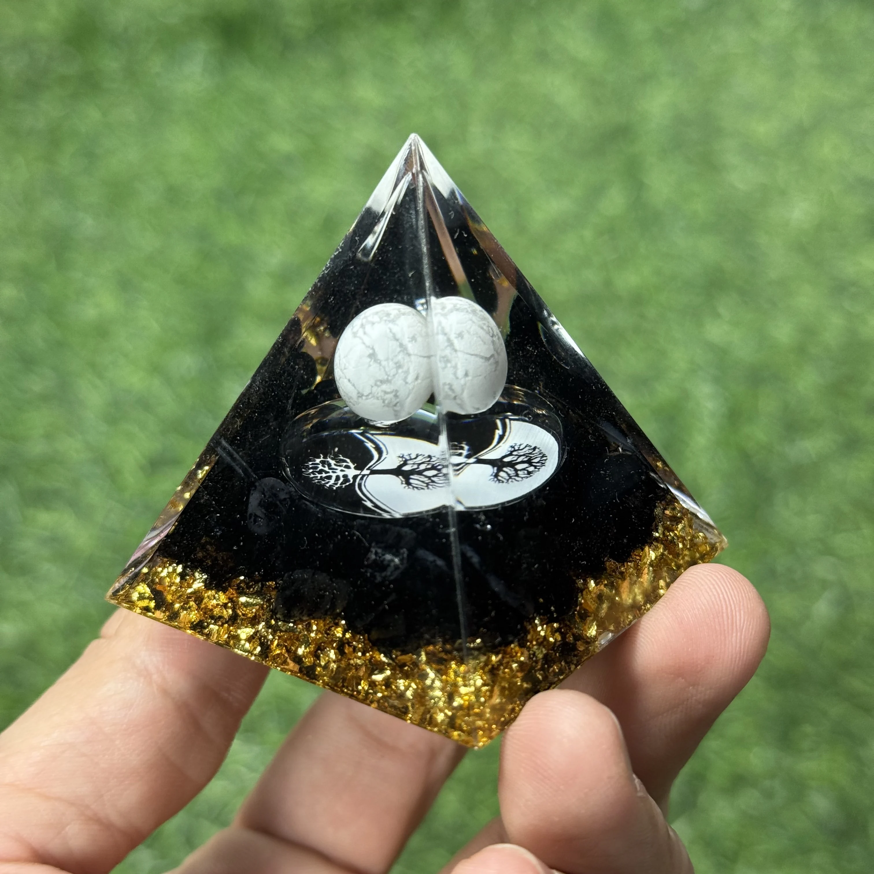 1 Stück natürliche Kristall-Orgon-Pyramide, handgefertigte Ornamente für den Heim-Desktop, die Baum des Lebens-Pyramide mit Obsidian und Kristallkugeln