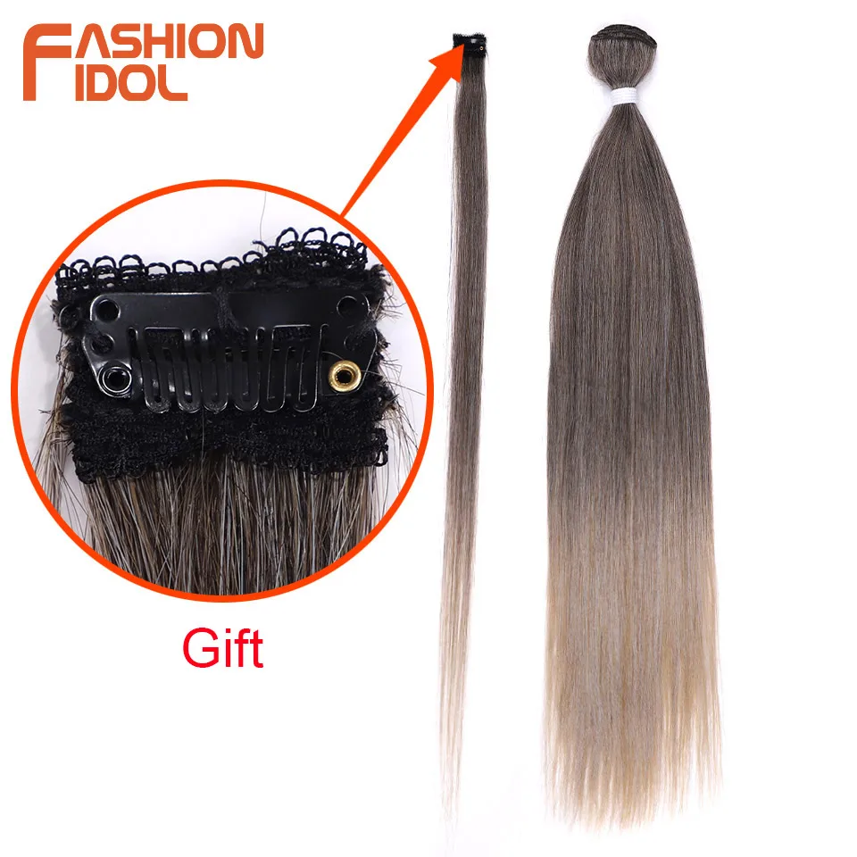 FASHION IDOL 30-Zoll-Haarteil für glattes Haar, Seidenlinie, synthetische Haarbündel, Ombre-Braun, Geschenk zum Anklipsen, künstliche Haarverlängerungen